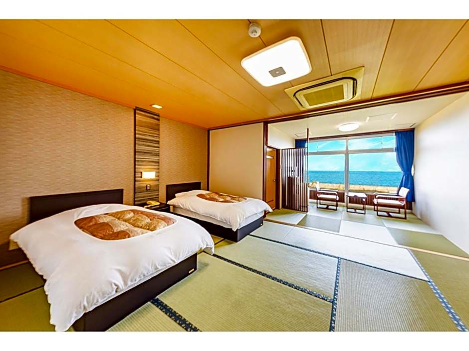 Providing free toiletries, this family room includes a private bathroom with a bath, a shower and a hairdryer. The family room features tatami floors, a seating area with a flat-screen TV, air conditioning, a safe deposit box as well as sea views. The unit offers 2 beds and 2 futons.